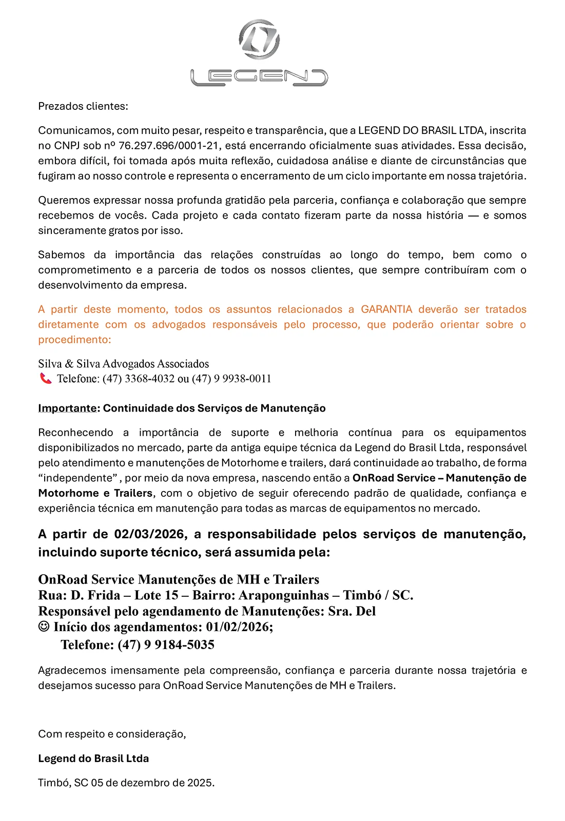 Ver NovosUm Legend para chamar de seu! Seja qual for o seu estilo, temos um trailer ou motorhome para você!